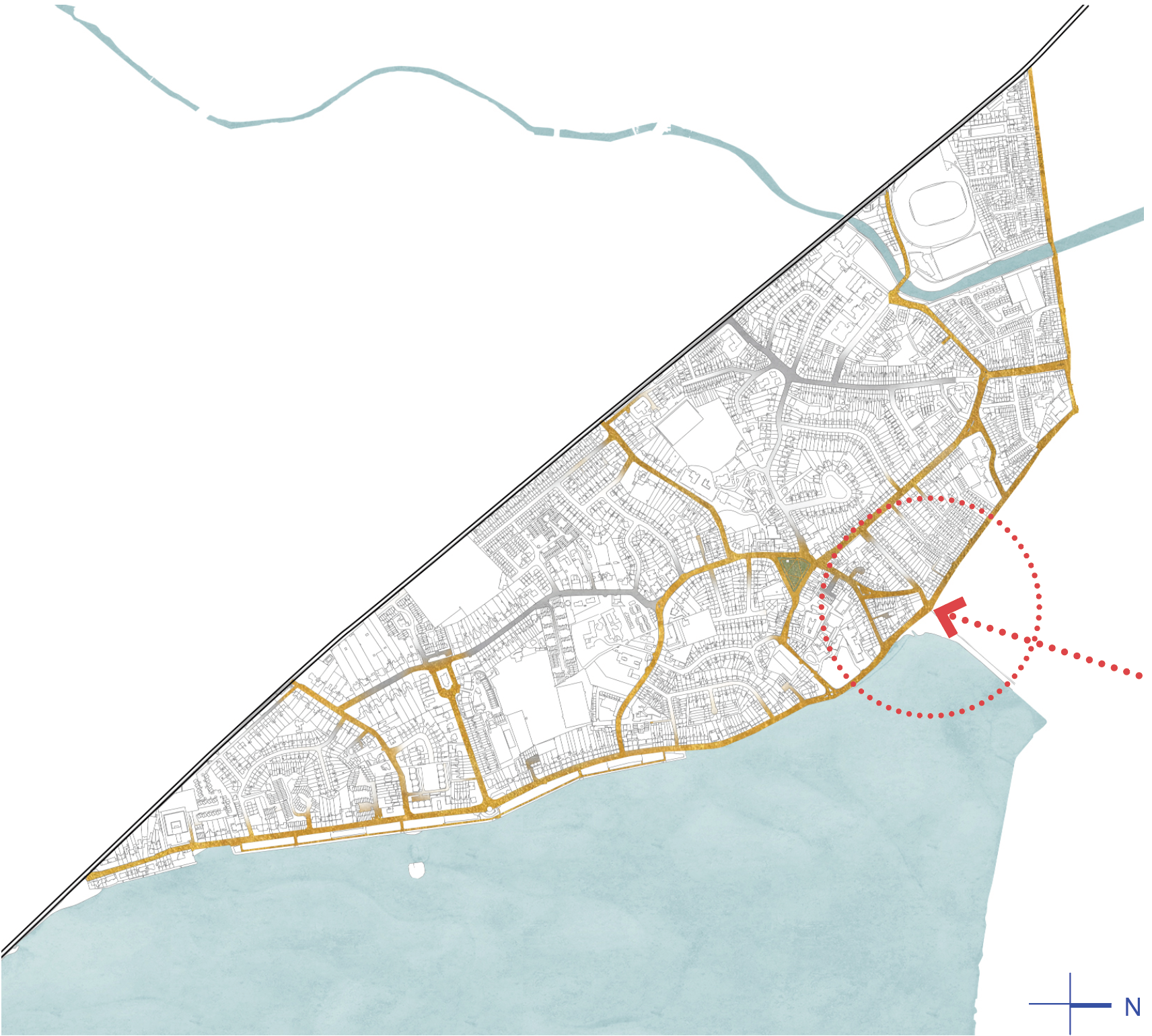 The intersection at Marine Drive and Beach Road is a nexus of overlap between pathways that link Sandymount Village, Irishtown Village, Seán Moore Park, the Irishtown Nature Reserve and the South Wall. As a result, it is intensely used and a strategic intersection. It is a significant opportunity for intervention to improve the public realm of Sandymount.