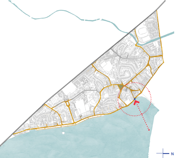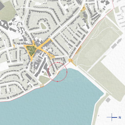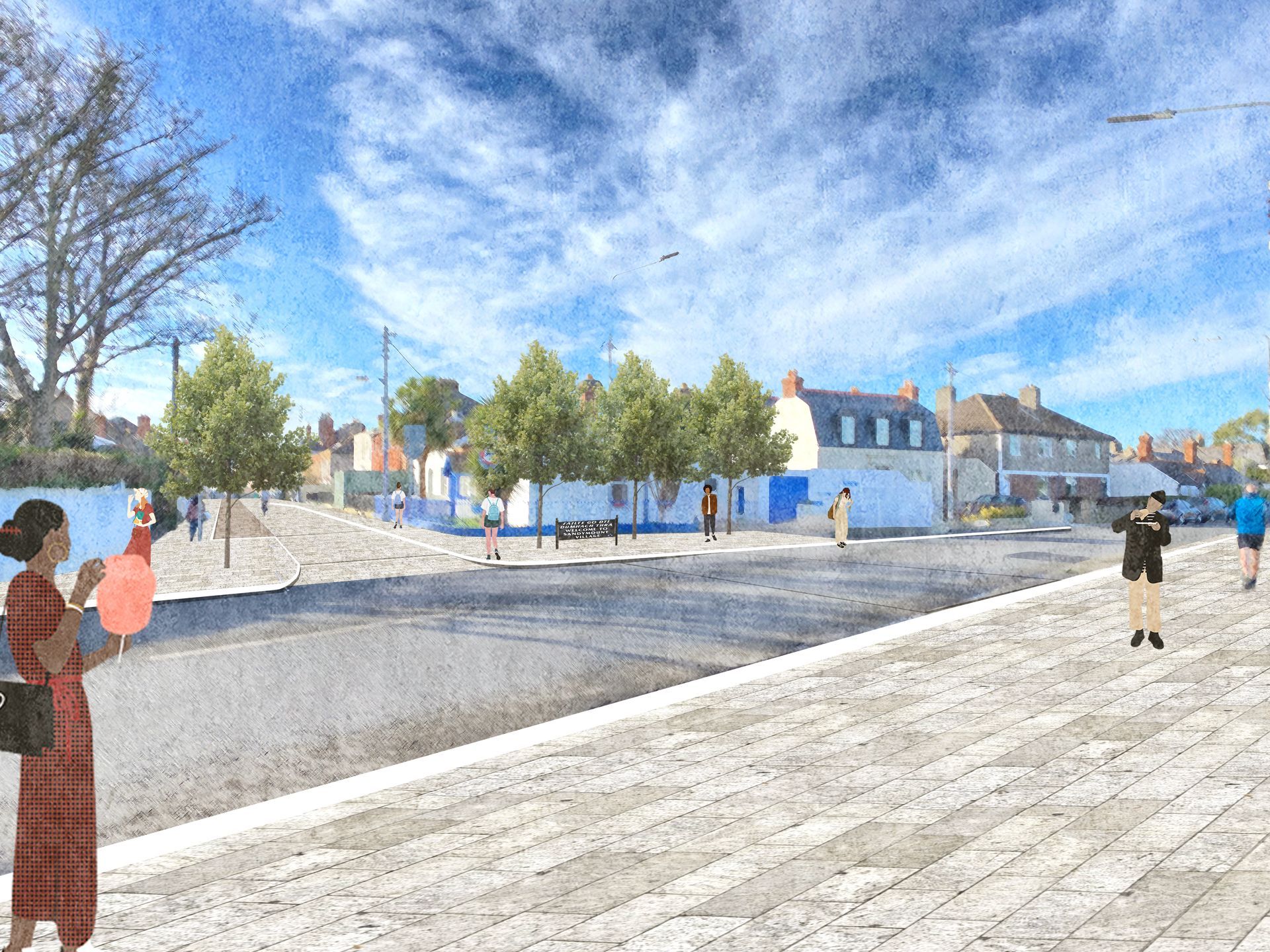 To create a more defined link between the sea and the entrance to the village at Seafort Avenue, it is proposed to add simple signage, surface enhancements and potentially a pedestrian crossing. These enhancements would also make it clear to visitors how to orient to the village.