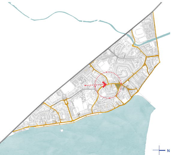 Currently there is no sense of arrival. The space is dominated by the trafficked road despite the wide footpath. The proposal involves the insertion of signage announcing Sandymount Village as well as providing seating and planting to green the space and increase biodiversity. A secure level crossing point would prioritise pedestrians and mark an entry into the Village.