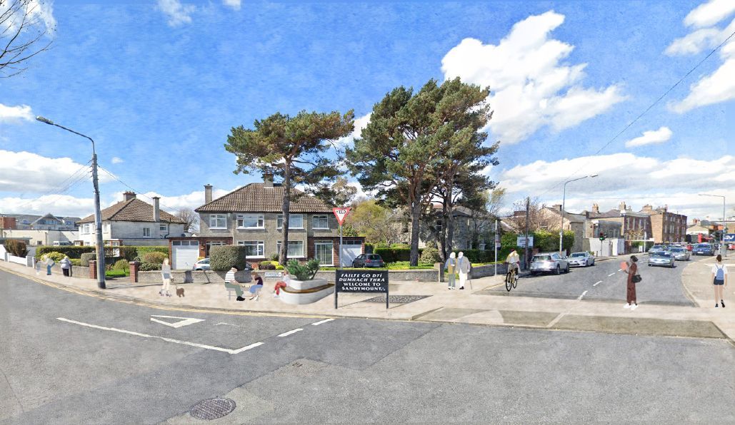 To define more clearly this arrival point into the village from Sandymount Avenue and Gilford Road, this project involves signage announcing Sandymount Village as well as providing seating and planting to make the junction more attractive and prioritise pedestrians.