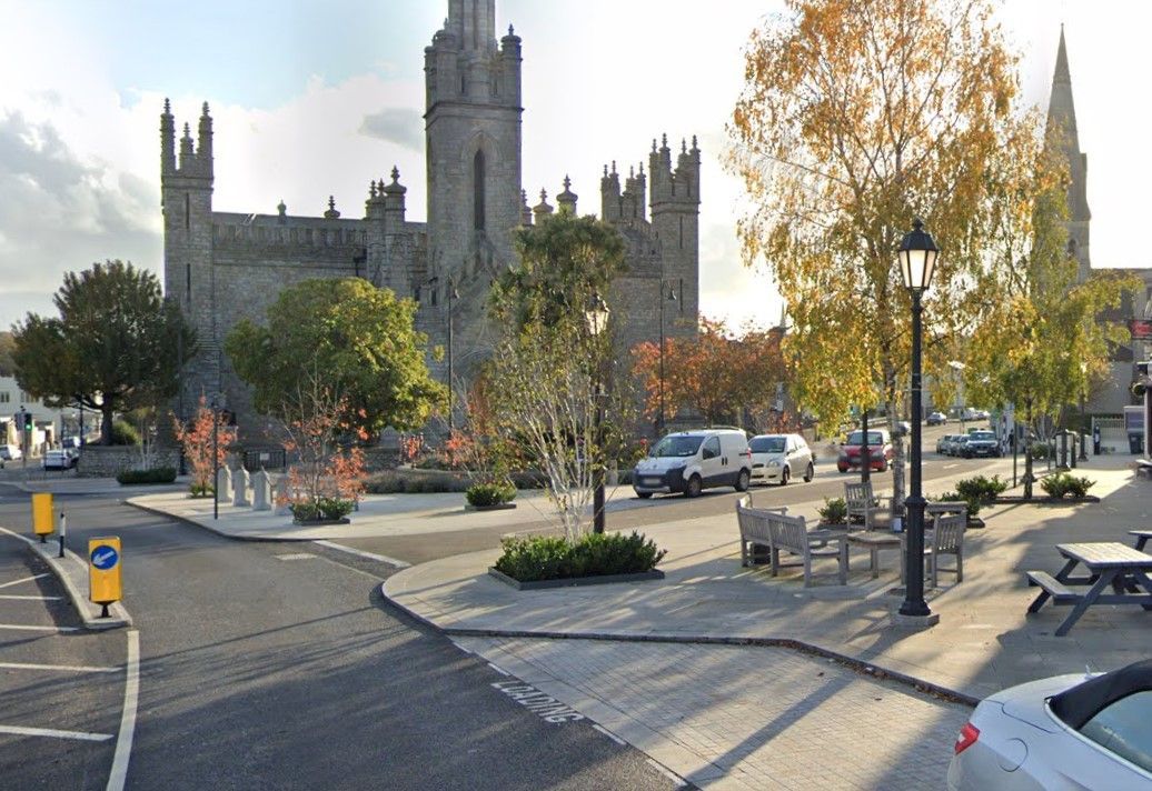 Resurfaced entry point to Monkstown Village, with new planting & street furniture.