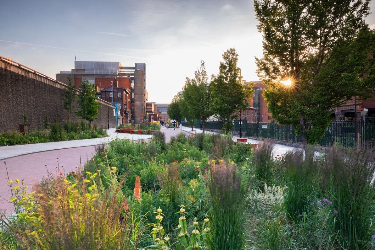 ButtonExample of a rewilded space, Grey to Green Project, Sheffield, England