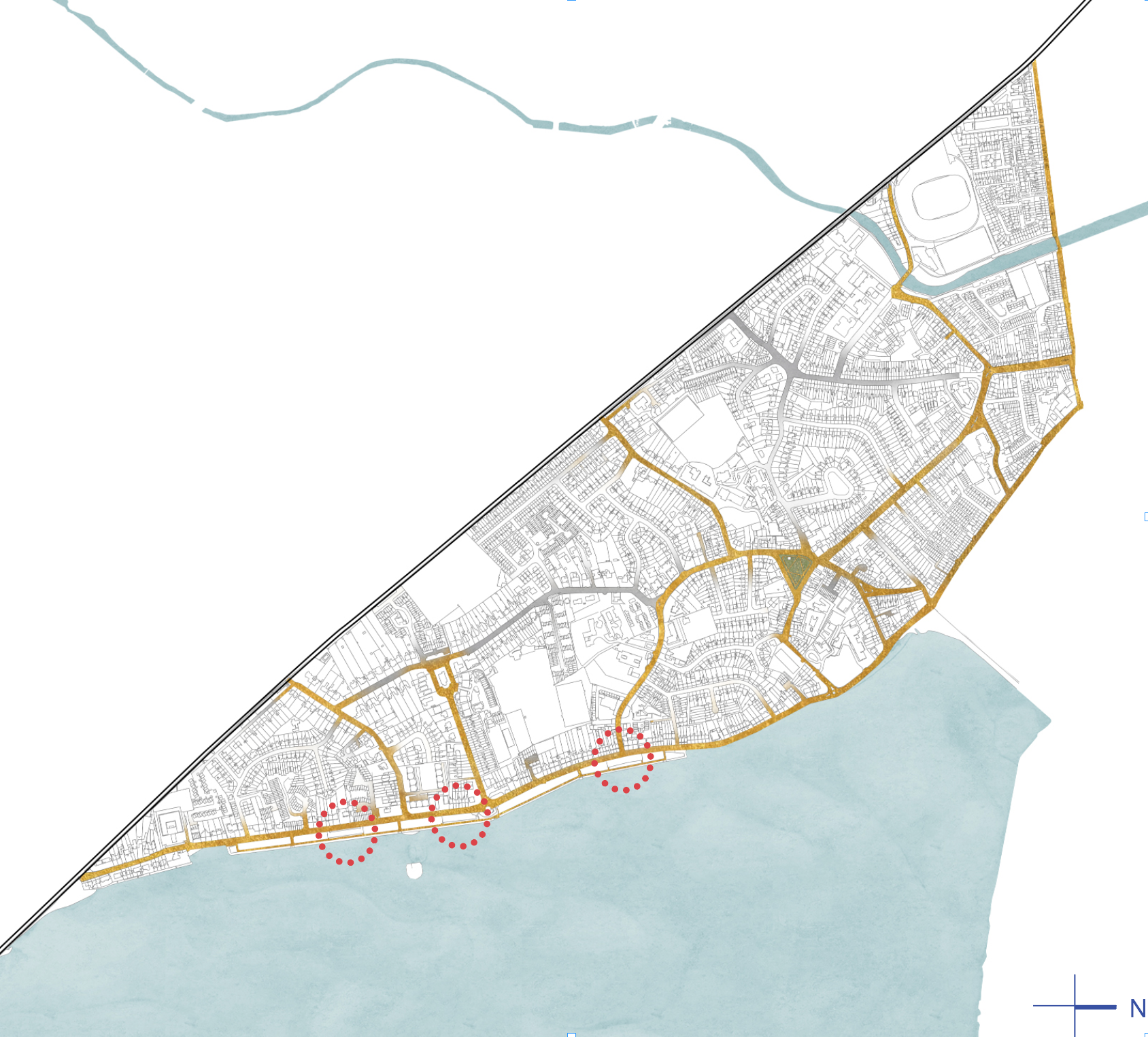 The Redevelopment of the Martello Tower as a public destination could reinforce the axis from St. John’s church as highlighted in the aerial view above