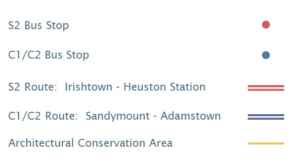 The C route spine serves Sandymount, travelling from Irishtown/Ringsend via Tritonville Road, Sandymount Road, Gilford Road, Park Avenue to the terminus at St John’s Church. This provides the arterial frequent service to the city centre.