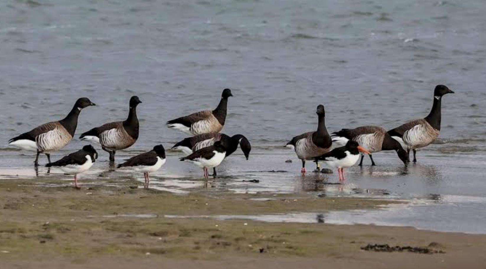 Brent Geese (Source: rte.ie) From autumn through winter and into early spring large numbers of wildfowl and waders are found. These include Brent Goose, Shelduck, Grey Plover, Ringed Plover, Turnstone, Knot, Black-tailed Godwit, Bar-tailed Godwit, Whimbrel (in spring and autumn), and Redshank. In autumn small numbers of Little Stints and Curlew Sandpipers sometimes occur around the Merrion Gates end while large flocks of gulls use Sandymount as a roosting site in winter. This is one of the best sites for seeing Mediterranean Gulls in winter. In late summer the strand is also a roosting site for terns. (Source: https://dublinbirding.ie/)