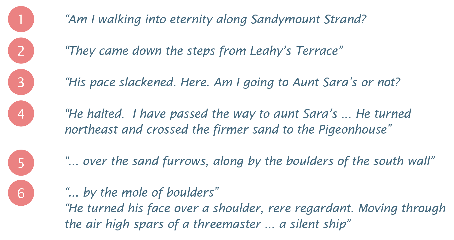 Map of the route walked by Stephen Dedalus on Sandymount Strand in James Joyces’ Ulysses