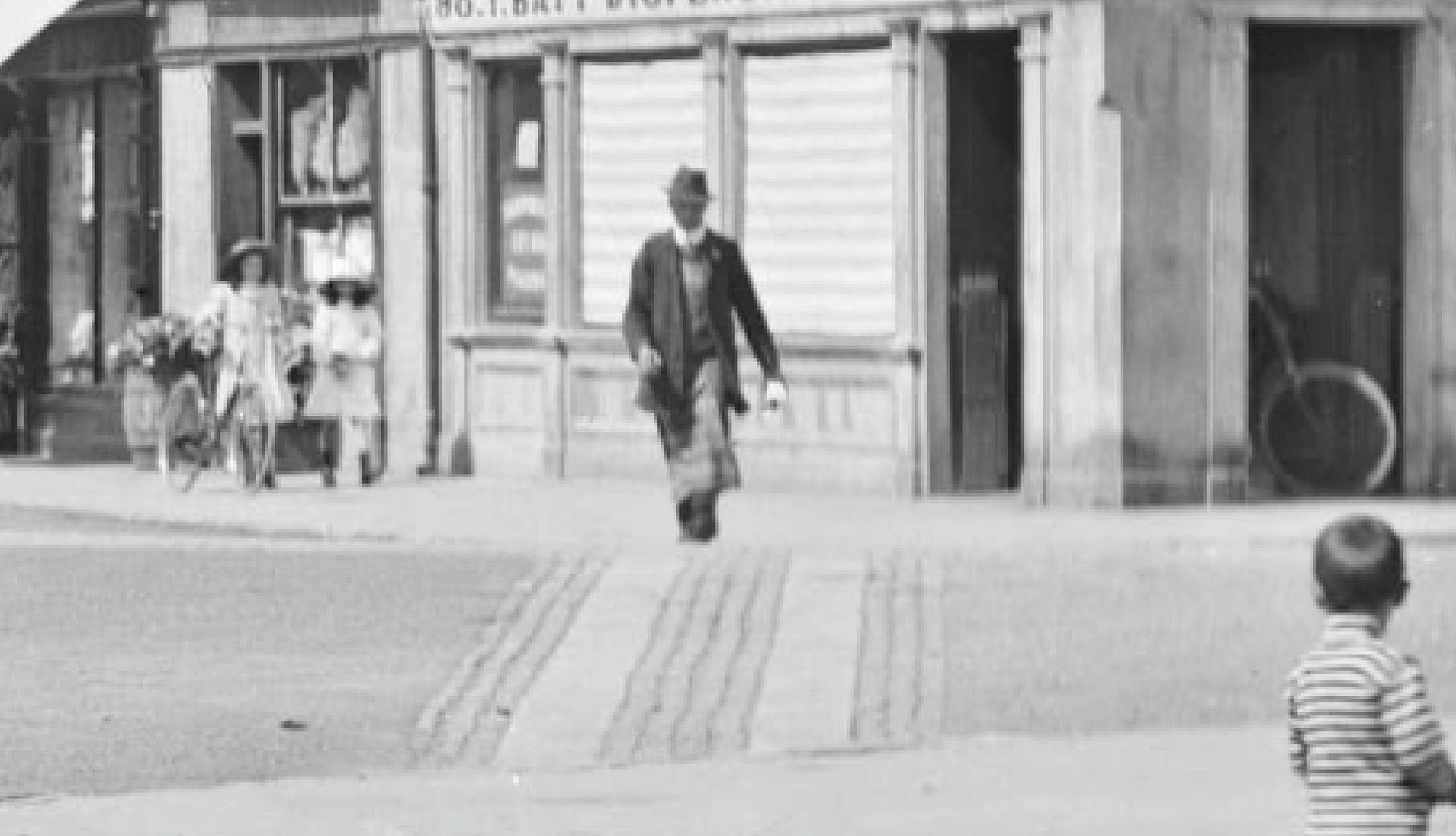Historic image showing previous street crossings at the Green & Sandymount Road