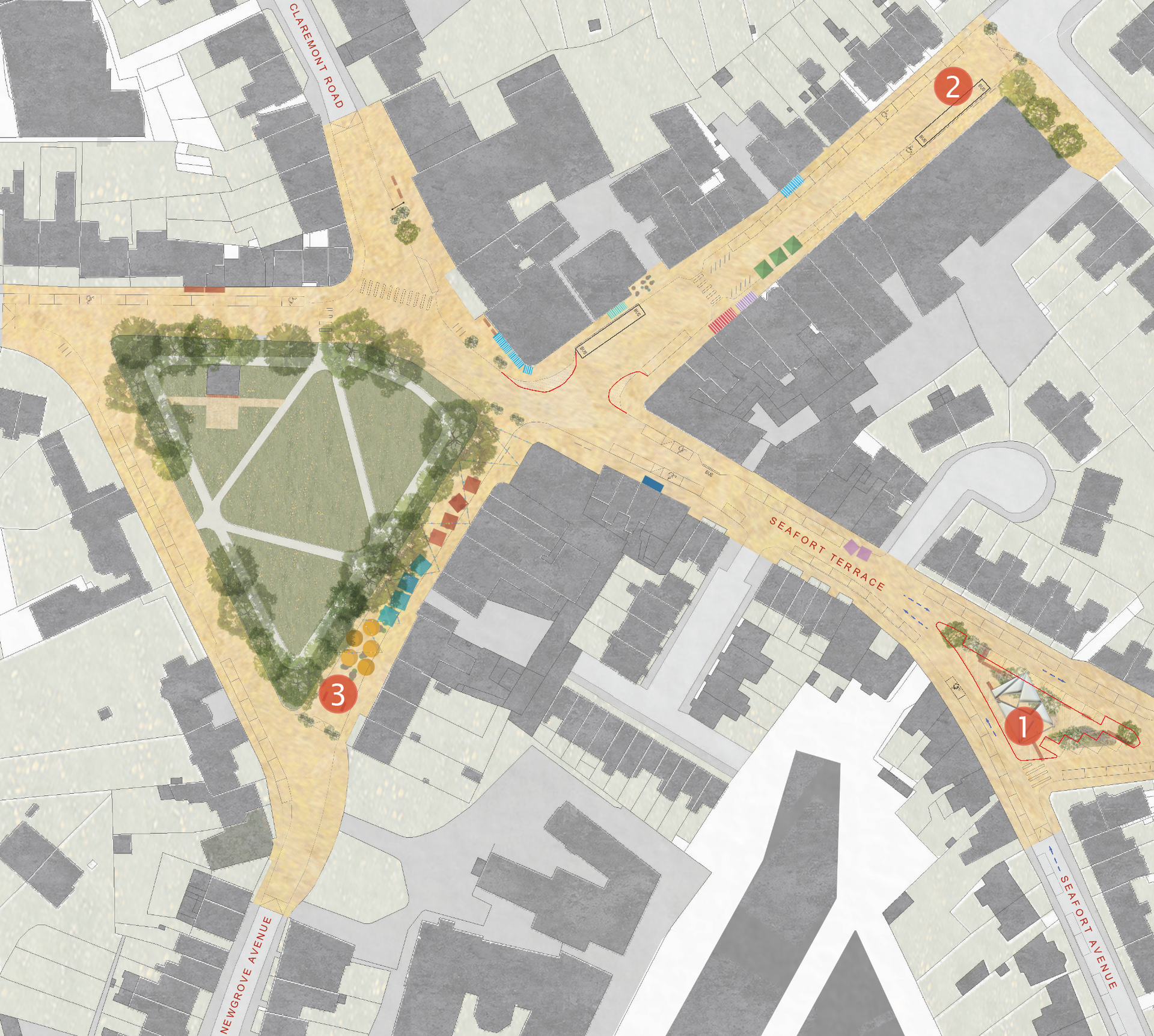 Pedestrianisation of the north side of Sandymount Village Green has been very successful. It is not, however, anticipated that the entire area identified for surface enhancement in the Village would be pedestrianised. Rather it could become a Shared Surface where pedestrians are prioritised while maintaining the existing passage of traffic but a slower pace. Entering a Shared Surface can have the effect of heightening a driver’s awareness of pedestrians in the vicinity, prompting more cautious driving. This represents a graded approach from full pedestrianisation, to pedestrian priority Shared Surfaces, to more typical traffic management outside the areas identified for surface enhancement.